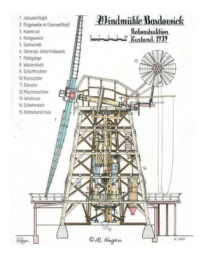Heute wird ca. ein Drittel des zu vermahlenden Getreides mit Windkraft auf unseren Mahlsteinen verarbeitet, so dass die Bardowicker Windmühle als produzierendes technisches Denkmal heute eine der wenigen Mühlen ist, welche gewerblich mit Windkraft mahlt.