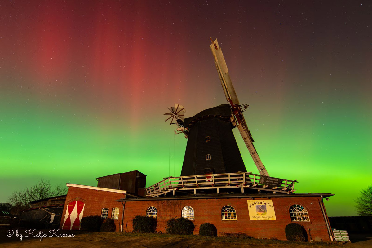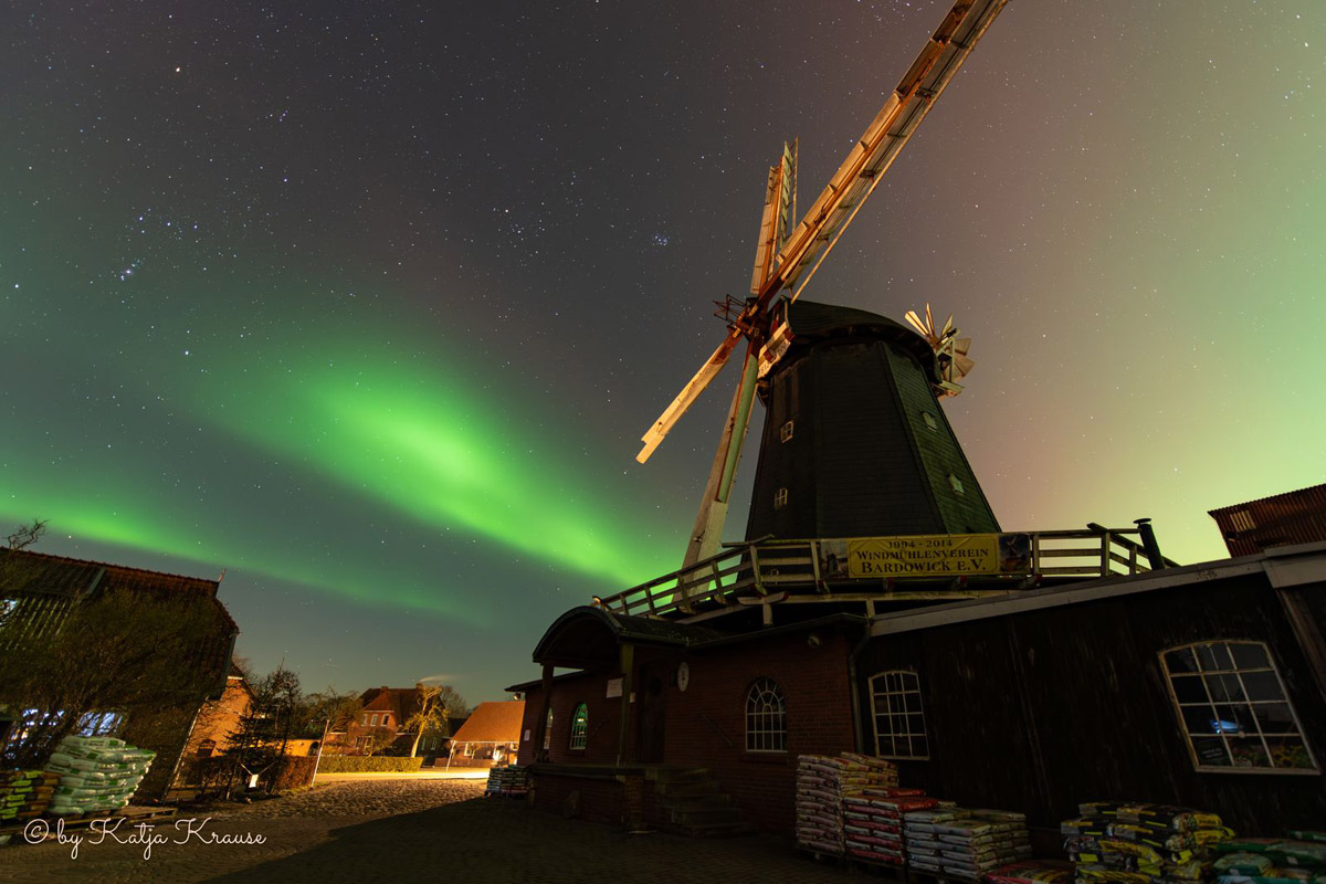 Katja Krause aus Radbruch sendete uns tolle Aufnahmen aus der Polarlicht-Nacht zwischen 19. und 20. Januar 2026. So ein Himmelsspektakel hat unsere Mühle nicht oft erlebt!