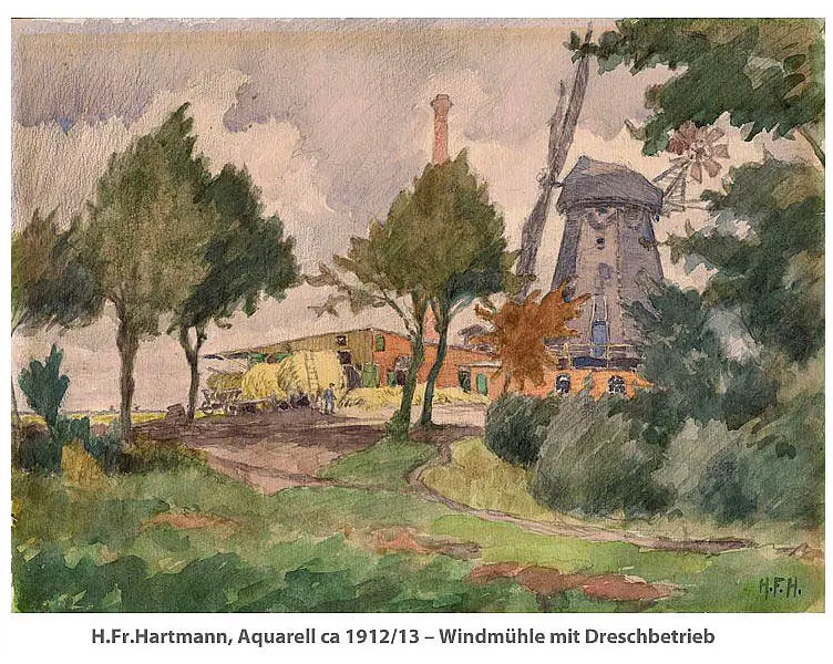 Am 07. September 1907 erwirbt Georg Meyer (der Sohn des Besitzers der Windmühle Handorf) die Mühle. Er führt zeitgemäße Verbesserungen ein, so verbindet er z.B. 1909 die Mühle mit einer Drescherei.