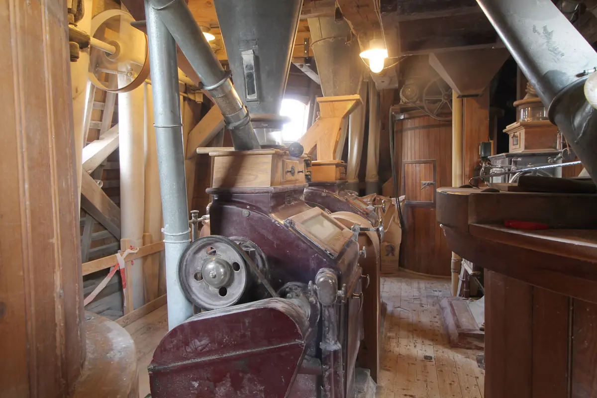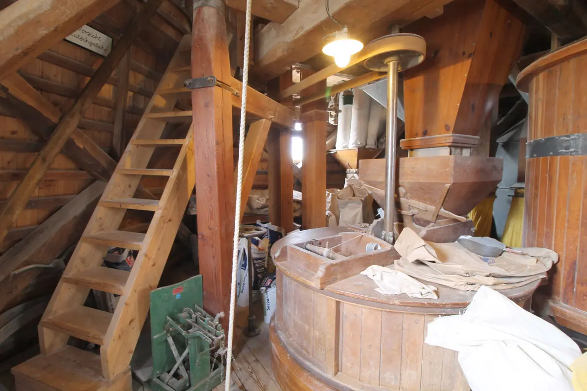 Hier können Sie in eine vergangene Zeit eintauchen, ein produzierendes technisches Denkmal im Betrieb besichtigen. Sie erleben rauschende Mühlflügel, knarrende Mühlräder, sausende Mühlsteine. Der Müllermeister weiß auch von liebenswerten Mühlengeistern zu berichten.
