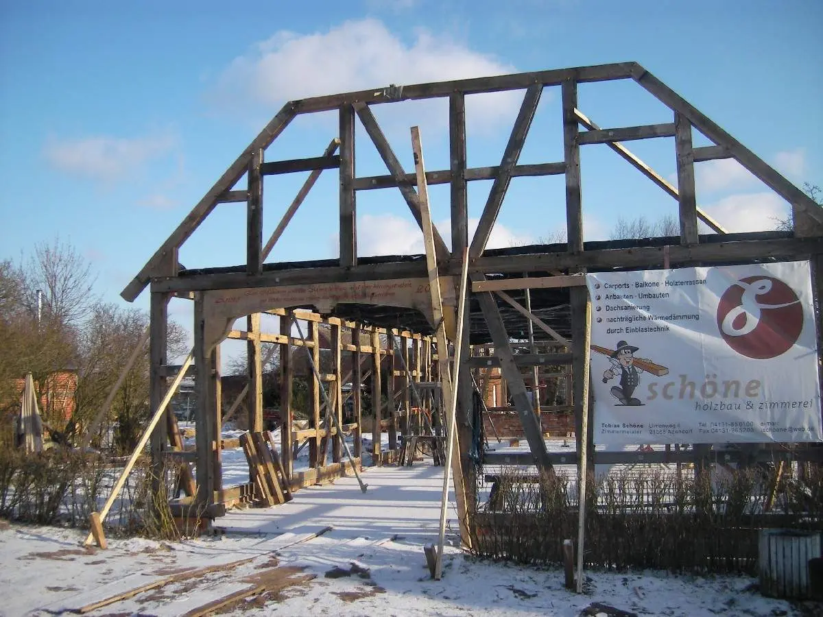 Im sonnigen September machten wir uns auf den Weg nach Rothemühle/Braunschweig und ans Werk, die 9x13m große Scheune fachgerecht zu zerlegen. Fachwerk nummerieren, Dachpfannen und Dachstuhl rückbauen. Ziegelsteine aus den Gefachen nehmen und in „Trümmerfauen“ Manier säubern - das Eichenfachwerk zerlegen. Nach einer Woche war die Arbeit getan, die Baustoffe wurden eingelagert, unsere Rücken konnten sich erholen.