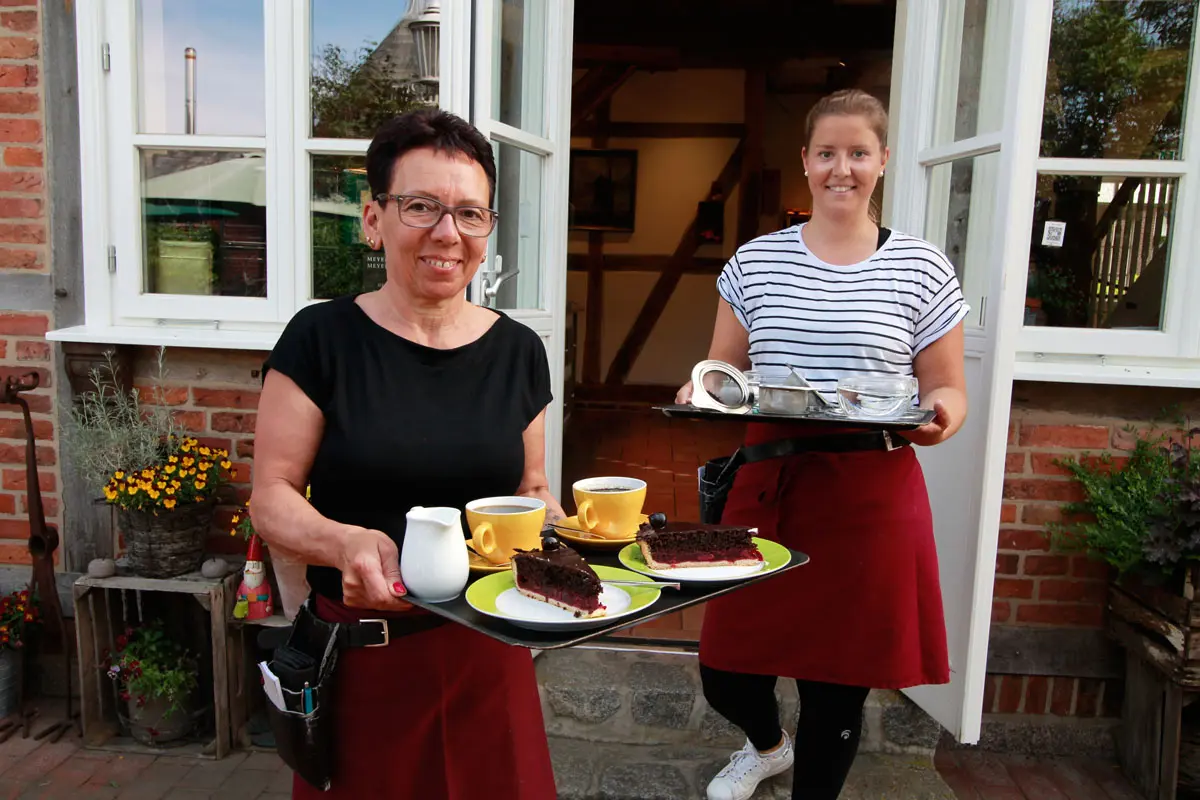 Allein unsere Torten sind einen Besuch wert. Sie haben die Wahl zwischen Himbeer-Mascarpone-, Schwedischer Johannisbeer-Baiser-, Marzipan-Torte und vielen anderen kreativen Ideen, die saisonal wechseln. Immer sind auch vegane Sorten im Angebot. Für zwischendurch und als Souvenir empfehlen wir das knusprige Mühlengespenst.