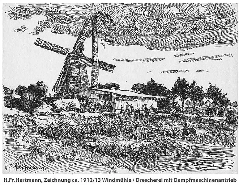 Am 07. September 1907 erwirbt Georg Meyer (der Sohn des Besitzers der Windmühle Handorf) die Mühle. Er führt zeitgemäße Verbesserungen ein, so verbindet er z.B. 1909 die Mühle mit einer Drescherei.
