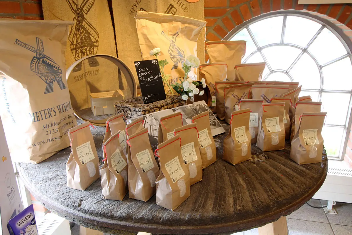 Unsere hauseigenen Mehlprodukte bieten wir unter dem Label „Meyer's Windmühle“ an. Sie finden bei uns ein großes Sortiment an verschiedenen Getreidemehlen sowie Backmischungen in vielen Größen.